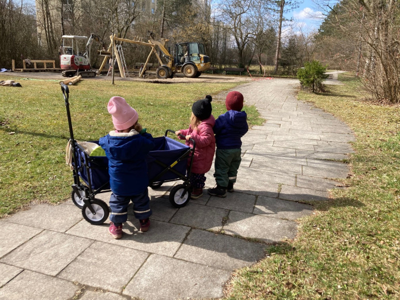 Das Besondere kann jederzeit entdeckt werden: in der Natur finden sich überall Sachen, mit denen man spielen und basteln kann. Mit viel Freude untersuchen wir unsere Umgebung und probieren z.B., womit man Musik machen kann, was sich zum Basten eignet oder spielen einfach im Sandkasten. Für mich ist es immer wieder faszinierend, mit welchem Eifer und welcher Hingabe die Kinder neue Sachen für sich entdecken.